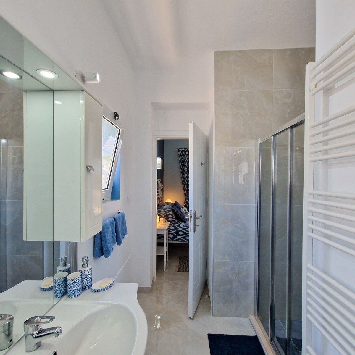 A delightful property situated in a quiet and peaceful area on the outskirts of the village of Kokkino Chorio Apokoronas, a light, bright and airy property decorated in the traditional Mediterranean blue and white, with lovely sea views.