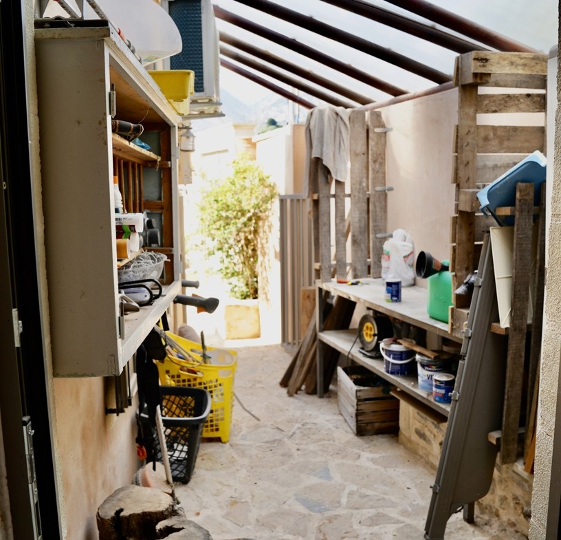 First Floor: the stairs lead to a small hallway with the master bedroom with ensuite bathroom and patio doors opening to a large part covered terrace with magnificent views of the hills and mountains across the village. An external staircase leads down to the courtyard garden.