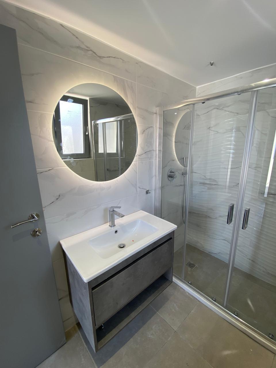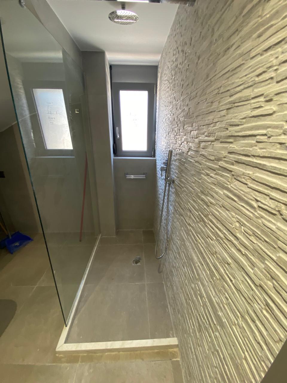 Fully tiled bathrooms with WC, sink, shower tray and glass screens