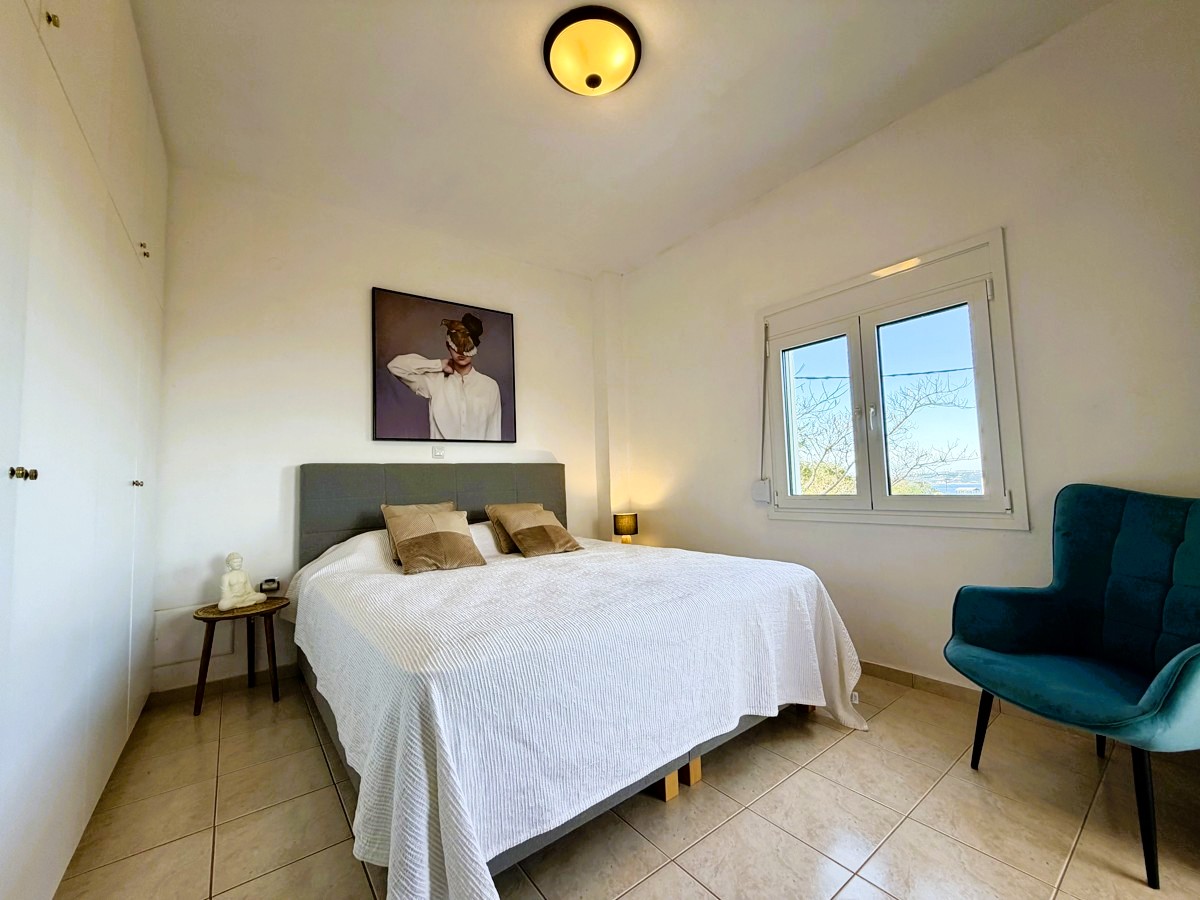 Outside, the home is surrounded by a mature orchard garden with a variety of fruit and nut trees, offering a peaceful, green setting and a taste of self-sufficient living. The concrete swimming pool is perfectly positioned to enjoy the open sea views, while generous outdoor areas provide space for relaxation and entertaining. The plot is fully fenced, making it ideal for families with children or dog owners seeking a secure outdoor environment.