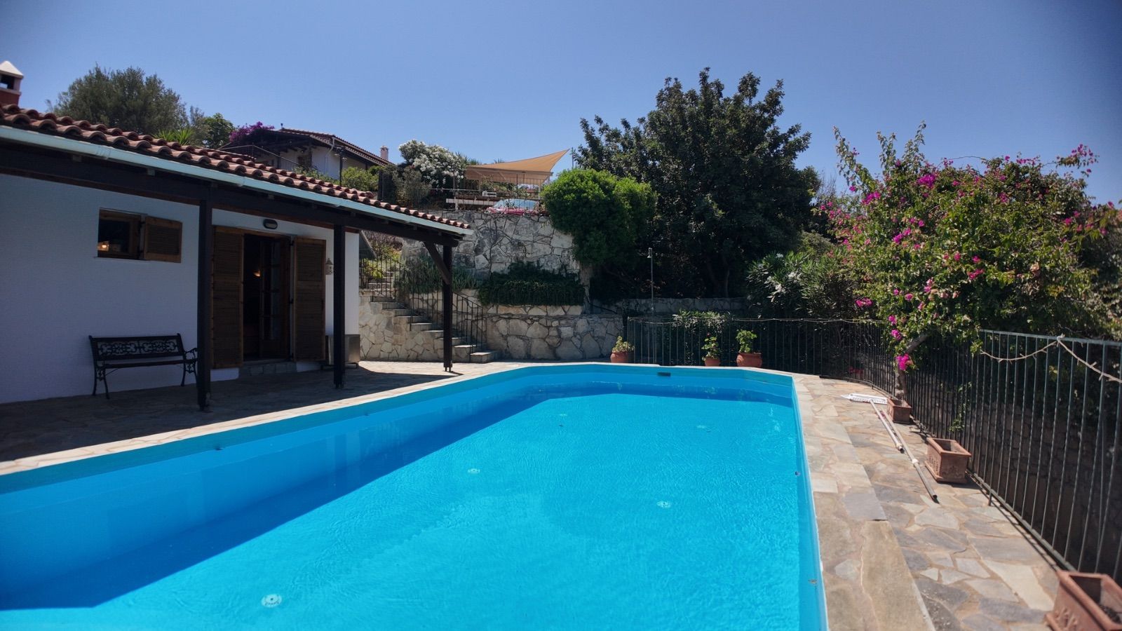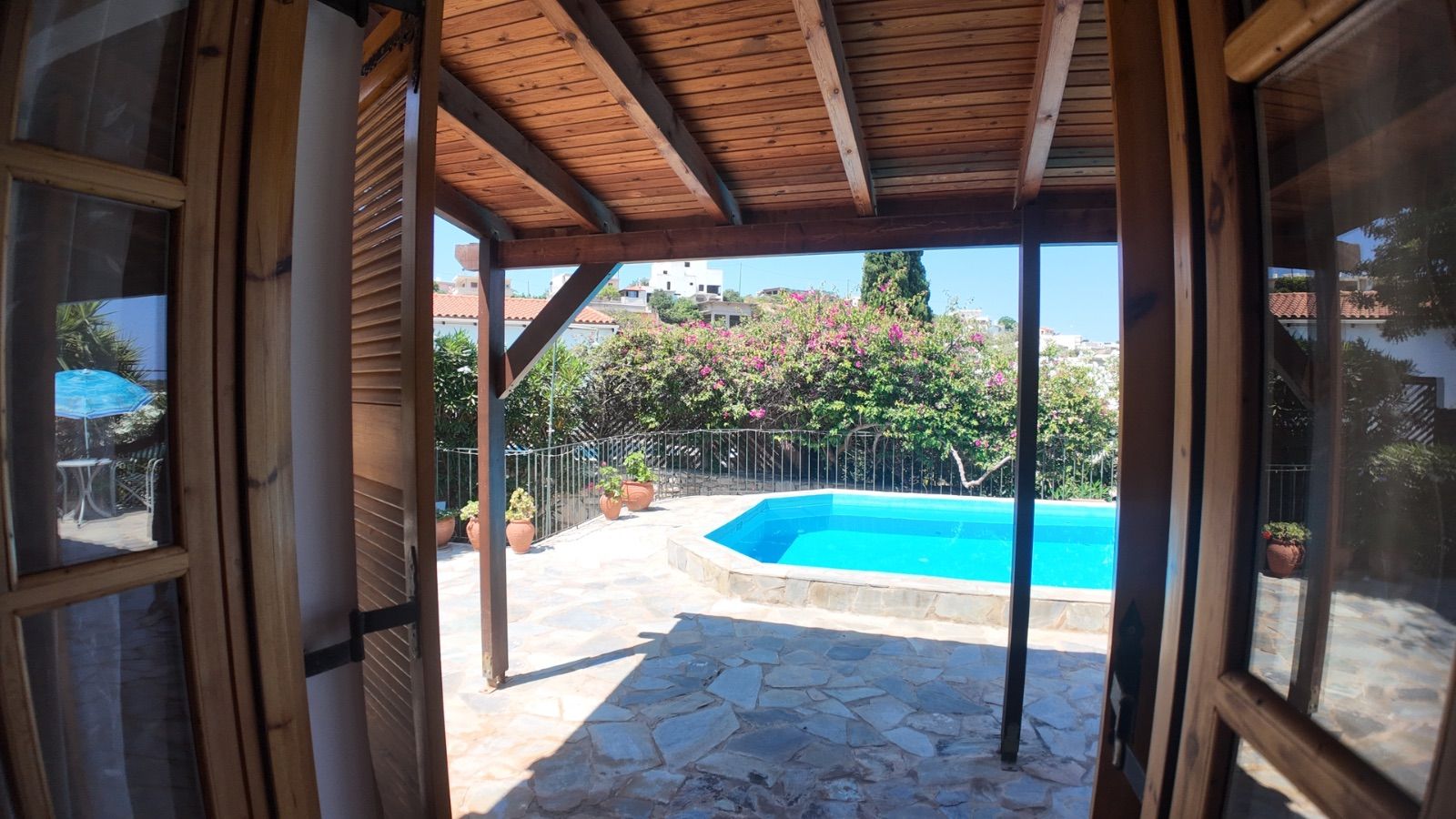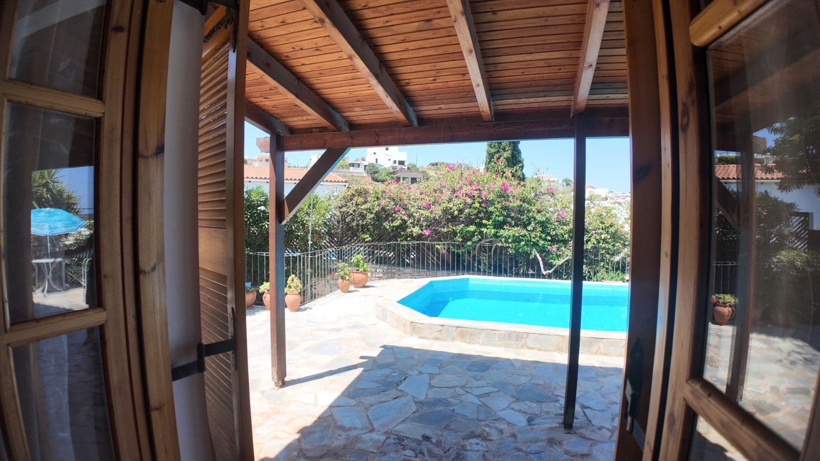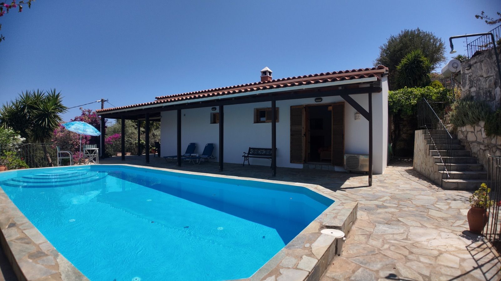 Step outside to enjoy a large private pool surrounded by a mature, well-maintained garden — a serene space for outdoor dining, entertaining, or simply soaking up the Cretan sun. Additional amenities include two practical storage rooms and a private parking space.